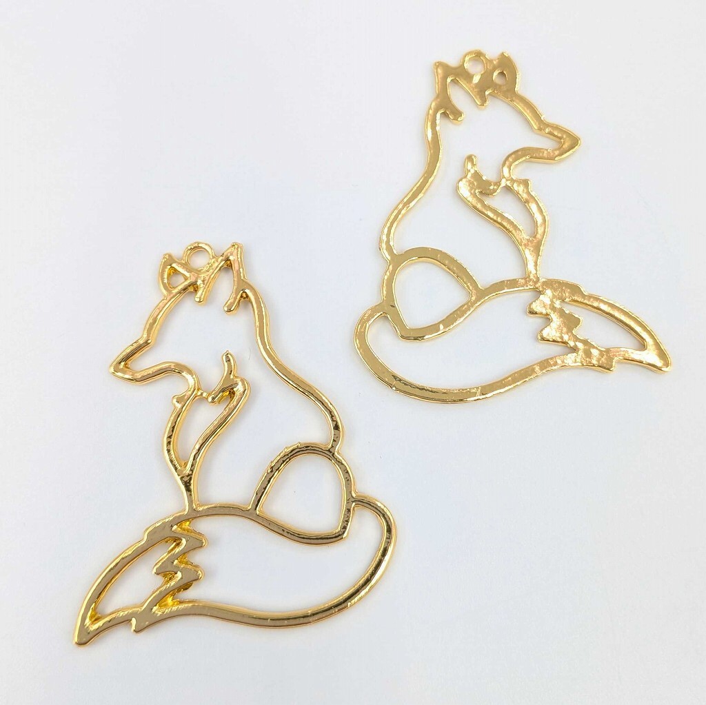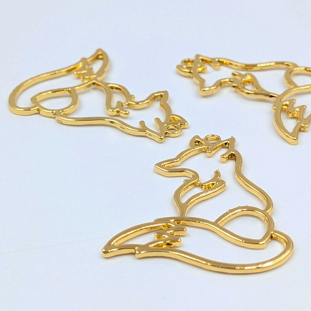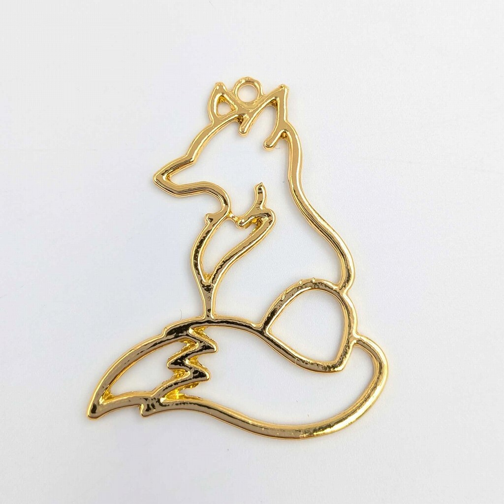 キツネがおすわりしている姿をモチーフにしたレジン枠です。ゴールドカラーの上品な輝きで、レジンの作品やハンドメイドアクセサリー制作に最適です。ネックレスやキーホルダー、バッグチャームなど、多彩な作品にお使いいただけます。