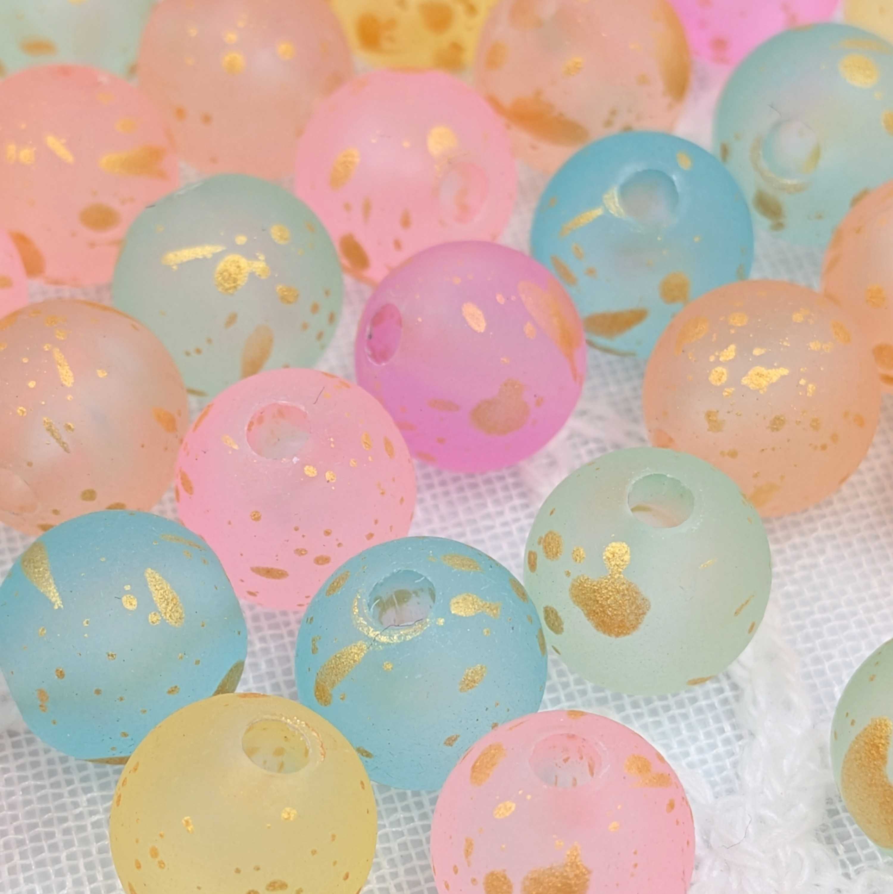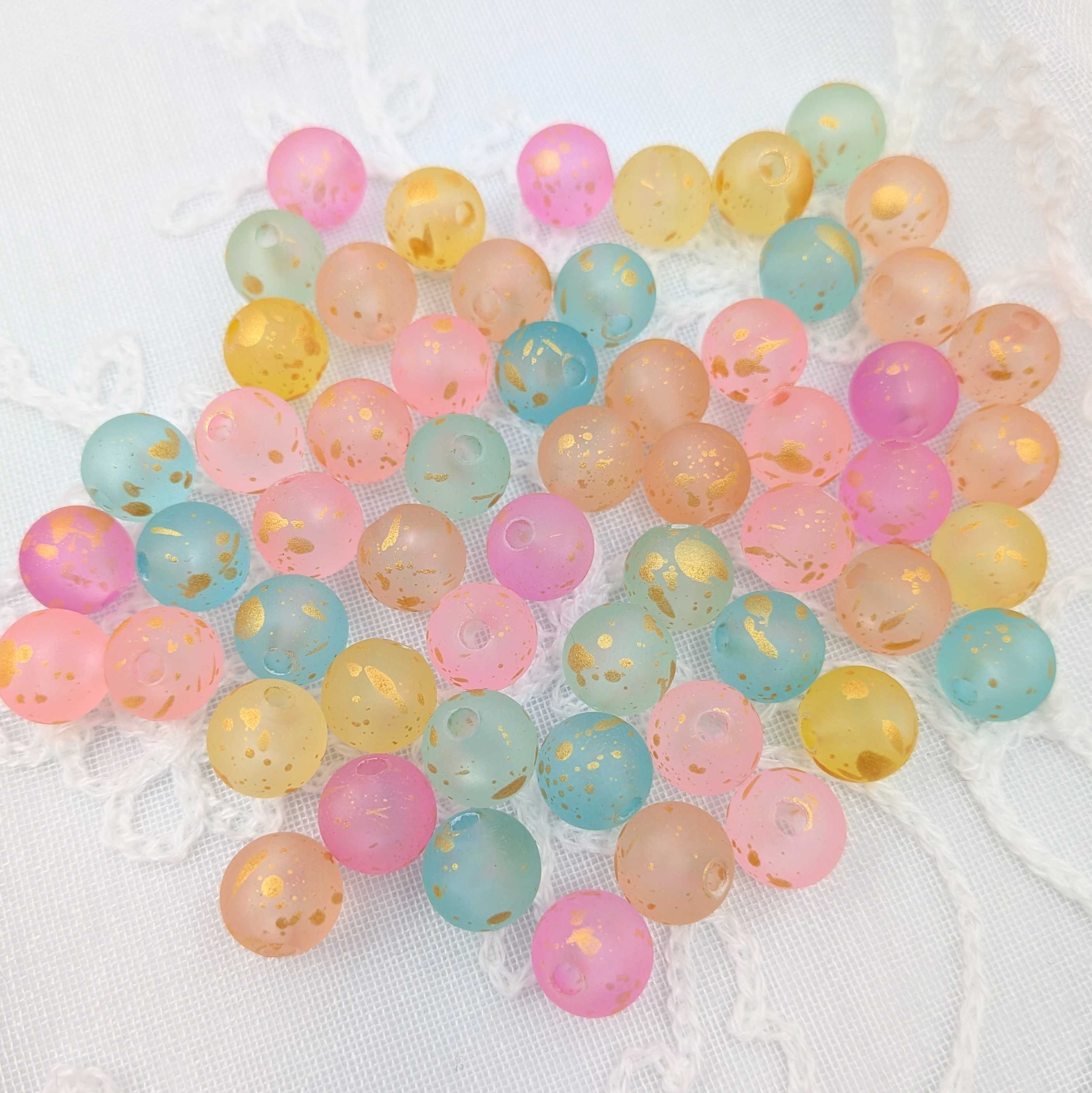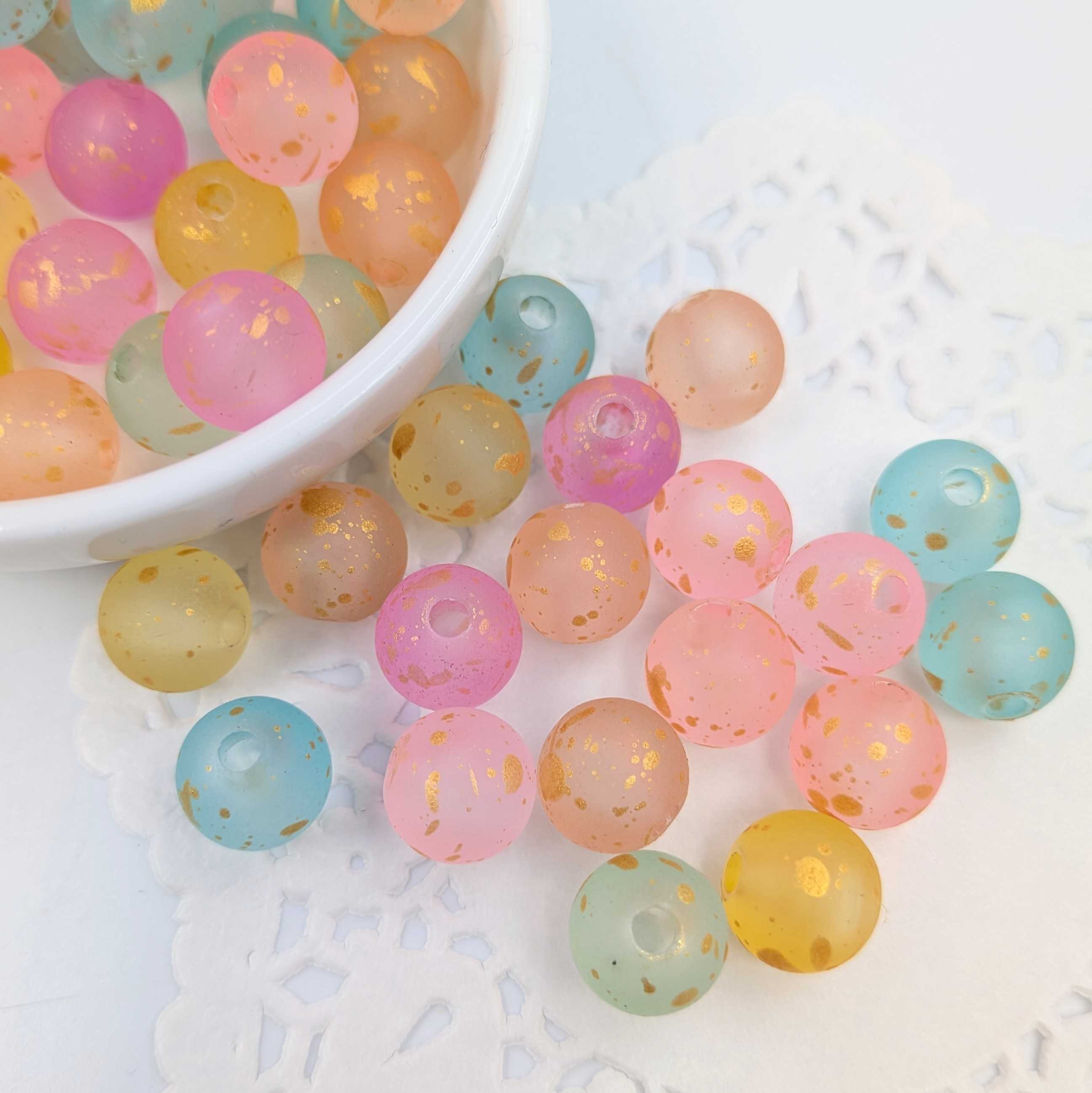 アクリルビーズ ラウンド型 B-10 くすみカラー 金粉風 約10mm 30個セット ハンドメイド アクセサリーパーツ プラスチックビーズ ビーズクラブ