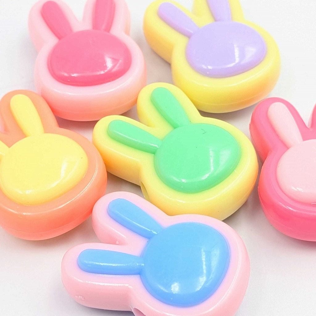 アクリルビーズ ウサギ型 B-19 カラフル 約24mm 10個セット ハンドメイド アクセサリーパーツ プラスチックビーズ ビーズクラブ