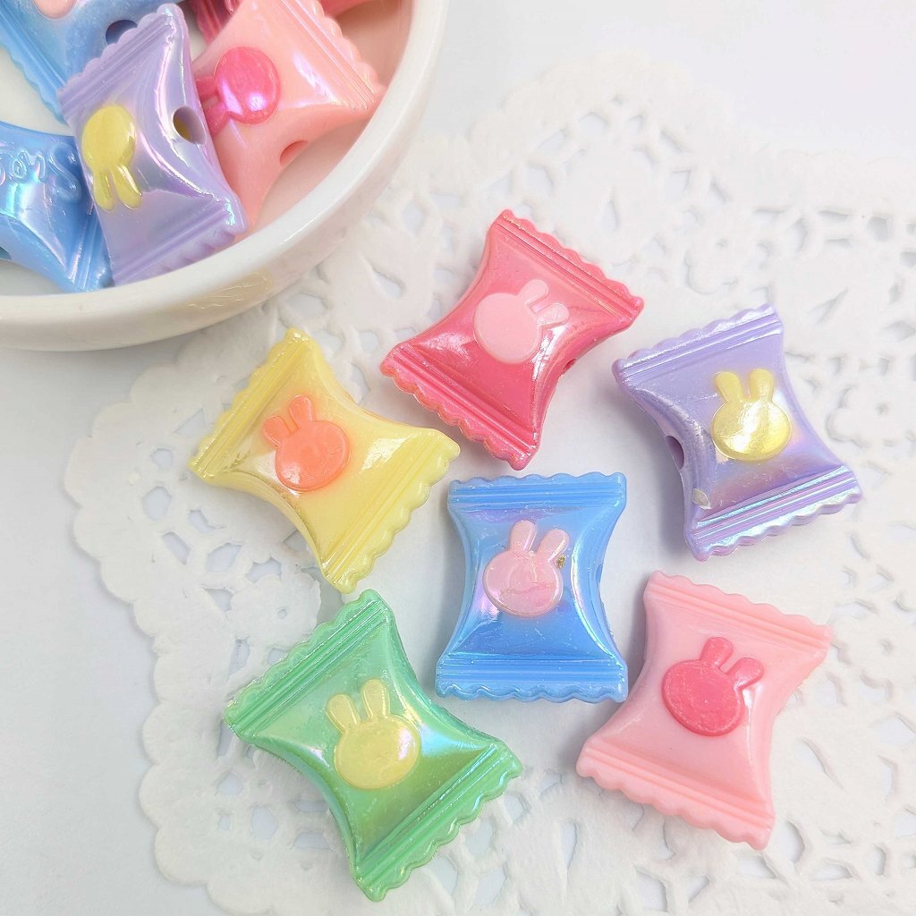アクリルビーズ キャンディー型 ウサギ模様入り B-26 カラフル 約21mm 10個セット ハンドメイド アクセサリーパーツ プラスチックビーズ ビーズクラブ